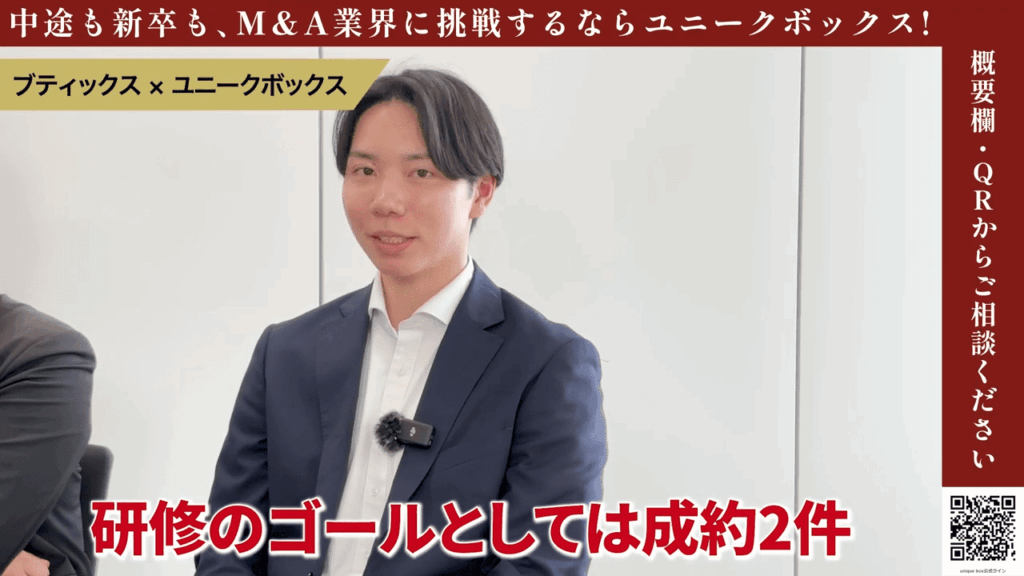 栗原:ありがとうございます。現在研修のレベル6まで進んでるというところで、実際に案件を進めていくフェーズが始まっていますよね。M&Aの成約を2件というのが研修の目標だとお伺いしましたが、その先の目標やどういうM&Aアドバイザーになりたいかなど、ぜひ教えてください。