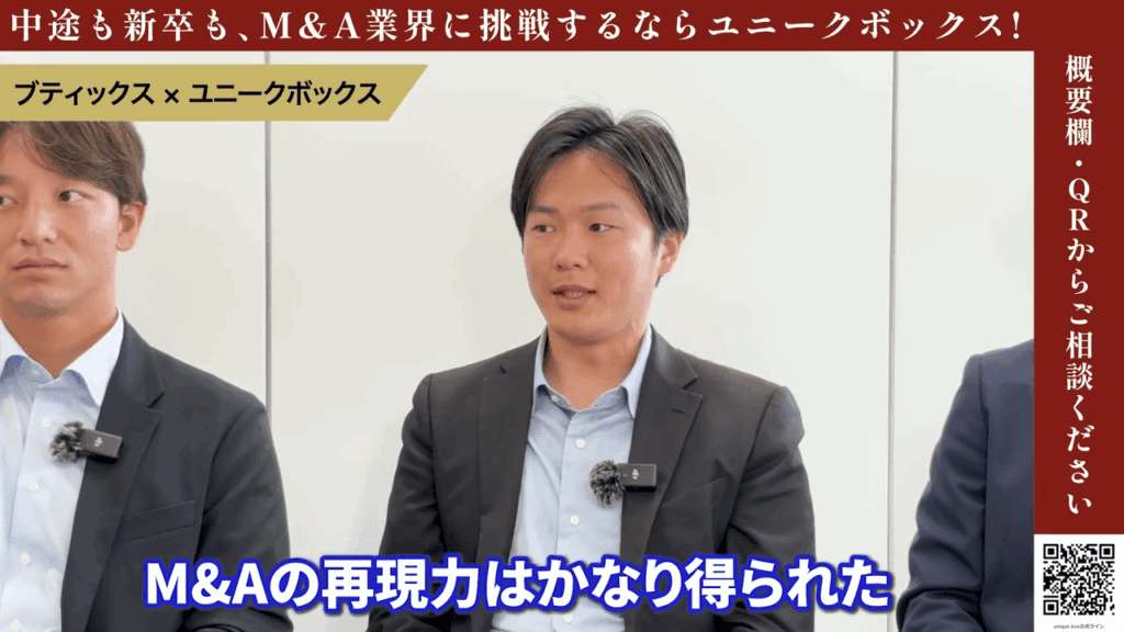 中嶋さん:はい。ブティックスはヘルスケア業界に特化したM&Aを行っていまして、その過程で私自身業界について相当詳しくなっています。ヘルスケア業界に特化しているからこそ、過去の自身の成約や先輩方の成約が、お客さん含めて共通するノウハウとして得やすい部分がありまして、そういった意味でM&Aの成約経験の数につながっています。最初に培った知識やお客さんから聞いた話を次に活かせる。繰り返すことで業界についてどんどん詳しくなる、そして提案できる幅も増える。幅広く提案していく中でお客様に刺さるものがわかっていき、それによってお客様の経営や、M&Aの中身、私自身の行動が変わっていき、それがいい方向に転じていくという経験を積み重ねていきます。